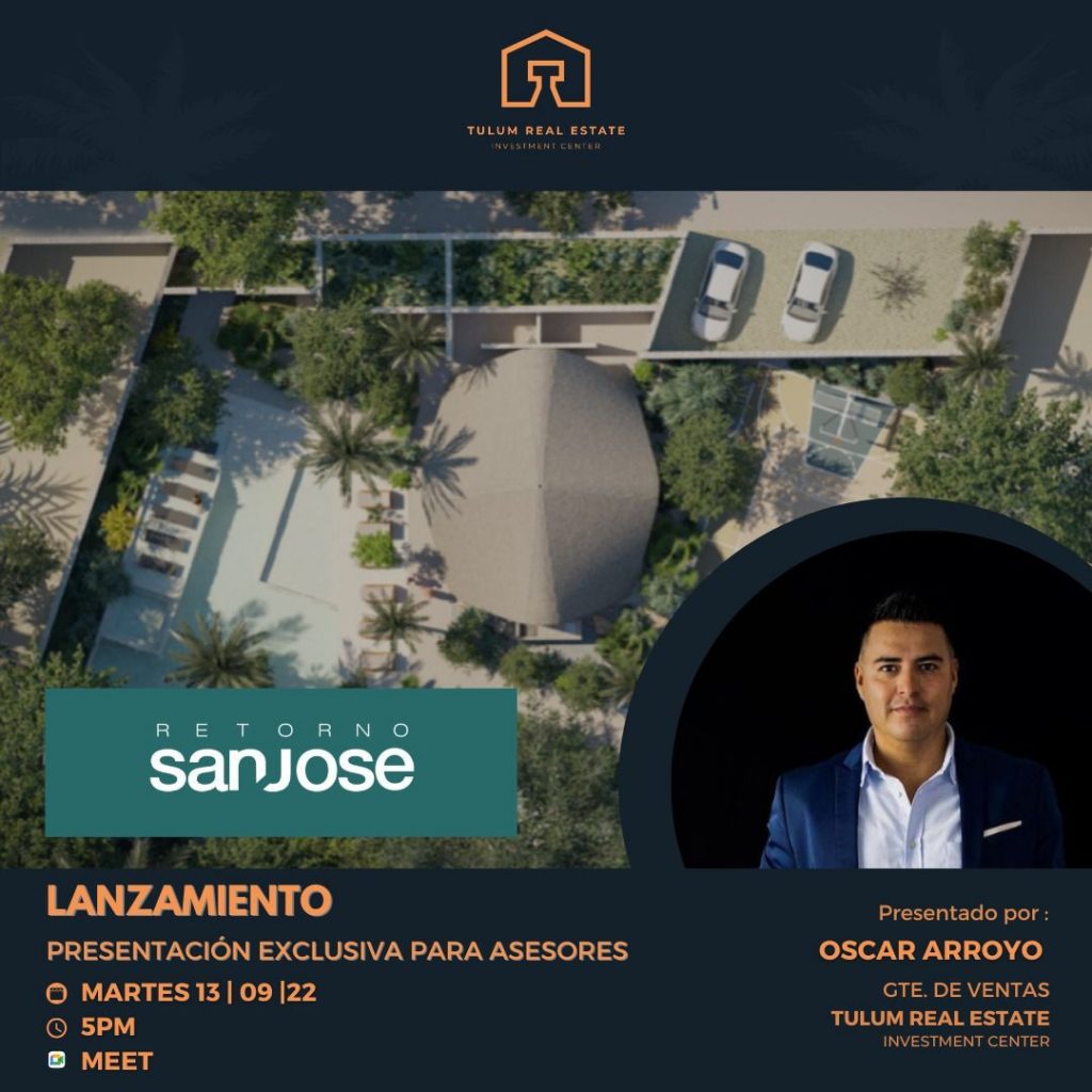 Share Facebook Twitter Email Este martes 13, no te cases ni te embarques !Mejor conéctate para conocer uno de los desarrollos que marcará sin duda un antes y en después en Tulum: Retorno San José Te esperamos! https://meet.google.com/ppv-uyer-szu Prev Post Presentación de Lik Zama II – Miércoles 7 de septiembre 5pm 07/09/2022 Next Post 7° Foro Inmobiliario ampi – Jueves 17 de noviembre en el hotel xcaret arte 09/09/2022 Related Posts OPEN HOUSE Y BONO DE $2,500 USD VIERNES 30 DE ENERO CASA DIANA 09/01/2026 ¡GRAN INAUGURACIÓN: PRIMER TEMAZCAL EN IX TULUM APARTMENTS! 31/12/2025 OPEN HOUSE | MIRALUNA TULUM | BONO $2,000 USD AGENTE VENDEDOR 10/12/2025 Write A Comment Cancel Reply Guardar mi nombre, correo electrónico y sitio web en este navegador para la próxima vez que haga un comentario.